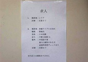 イスラム過激派組織「イスラム国」に参加するためにシリアへの渡航を計画した日本の大学生が捜索を受けた。 しかも、この求人が東京の普通の書店の貼り紙だというから驚きです。 求人内容 1. 勤務地: シリア 詳細: 店番まで 2. 勤務地: 新疆ウイグル自治区 職種: 警備員 資格: 日本国籍 給与: 月額15000元 備考: 中国語不要、暴力に耐性のある方、面接時思想チェックあり 詳細: 店番まで ※当店とは関係ありません。 しかし、この求人は書店関係者によるいたずらだった。 この求人に応募してきた学生を、イスラム法学の大学教授に紹介したとのことです。 求人の内容が非常に雑で、こんなことに応募するとは信じがたい。 しかし、複数の学生が応募してしまった。 この事実が恐ろしい。 日本の学生も、世界に対し不満があるということだ。 色々な国の若者たちが参加しているイスラム国。 このイスラム国が無くなったとしても別の組織が生まれ、永遠に繰り返されるだろう。 対策はなしと言わざるをえない。