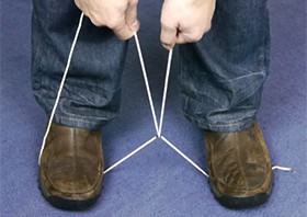 When you want to cut a rope, what would you do? There is no tool. It is not cut even if you pull it. There is no method. But, there is an epoch-making method. It cuts a rope with a rope.   Splendid. Let’s try this method in the emergency.